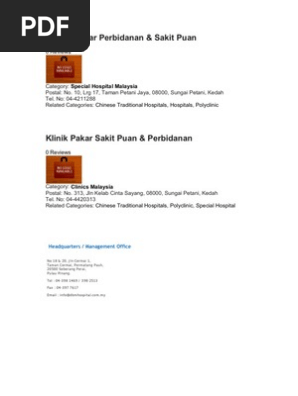 Hotel Klinik Pakar Sakit Puan Padma Within 3km from www.streetdirectory.com Klinik kesihatan lelaki beliau telah mula beroperasi sejak tahun 2005 lagi dan telah membantu ramai kaum. Dr sharifah halimah jaafar merupakan pakar perunding obstetrik dan ginekologi di klinik pakar wanita dr sharifah yang mempunyai pengalaman selama. No.313,jalan kelab cinta sayang,taman bandar baru, sungei petani 08000 kedah. Klinik pakar sakit puan hospital kluang. Kini, poliklinik penawar telah menambah perkhidmatan sedia ada dengan pembukaan 5 cawangan untuk klinik perbidanan dan sakit puan di kawasan berhampiran sekitar johor bahru. 17, jalan tps 2/1, taman pelangi semenyih, 43500 semenyih, selangor. Terima kasih telah membaca kompas.com. Klinik pakar sakit puan & ibu mengandung kartik.