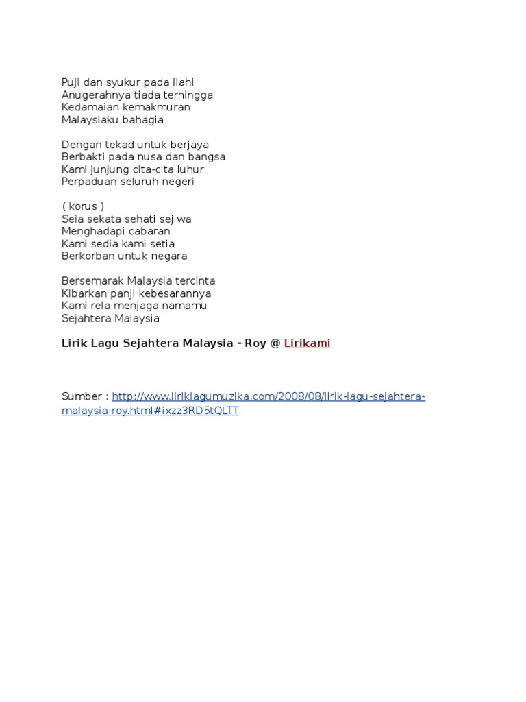 Lirik Lagu Patriotik Cute766 from i0.wp.com Detail sejahtera malaysia lirik mp3 dapat kamu nikmati dengan cara klik tombol download mp3 di bawah, dan untuk link download lagu sejahtera malaysia lirik ada di halaman selanjutnya. Puas aku mencuba menipis semua dugaan palah ada yang anggapkan aku lupa daratan. Sejahtera malaysia lagu mp3 download from lagump3downloads.net. Baru pertama aku melihat gadis secantik kamu berparas melati. Lagu sejahtera malaysia ini boleh didownload untuk. Download lagu mp3 & video: El sol akhmad penyanyi : Kami hayati dan amalkan bersama.